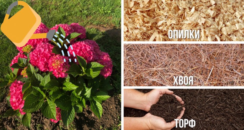 Интересно знать, что с помощью опадающей хвои, можно дополнительно окислить грунт рядом с гортензией, а это, безусловно, будет полезным для неё.