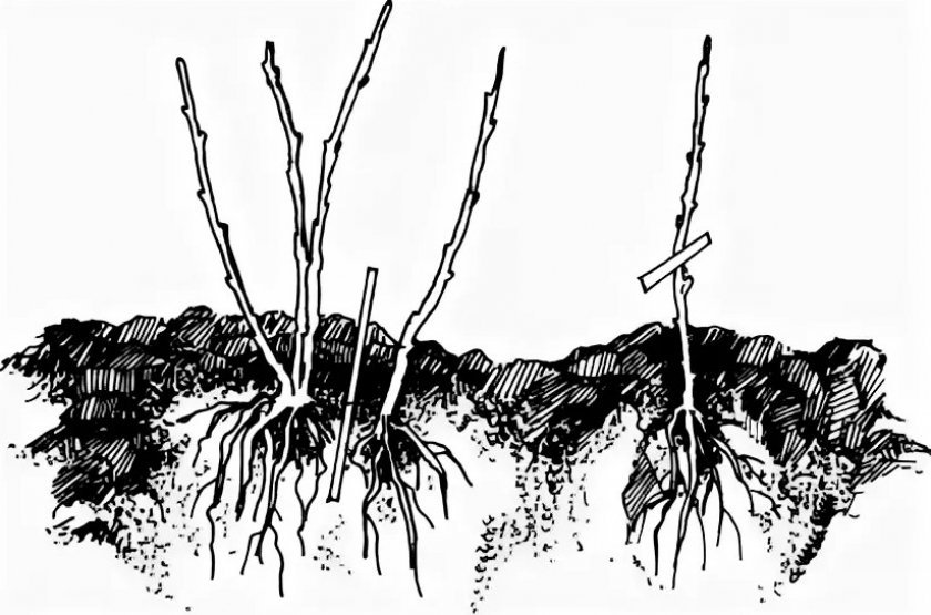 Отводки присыпать землёй так, чтобы осталась верхушка. Зафиксировать их можно при помощи проволочных скобок.
