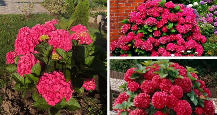 - соцветия крупные, шаровидные, окружность 20-25 см, темно-розового или красного тона;