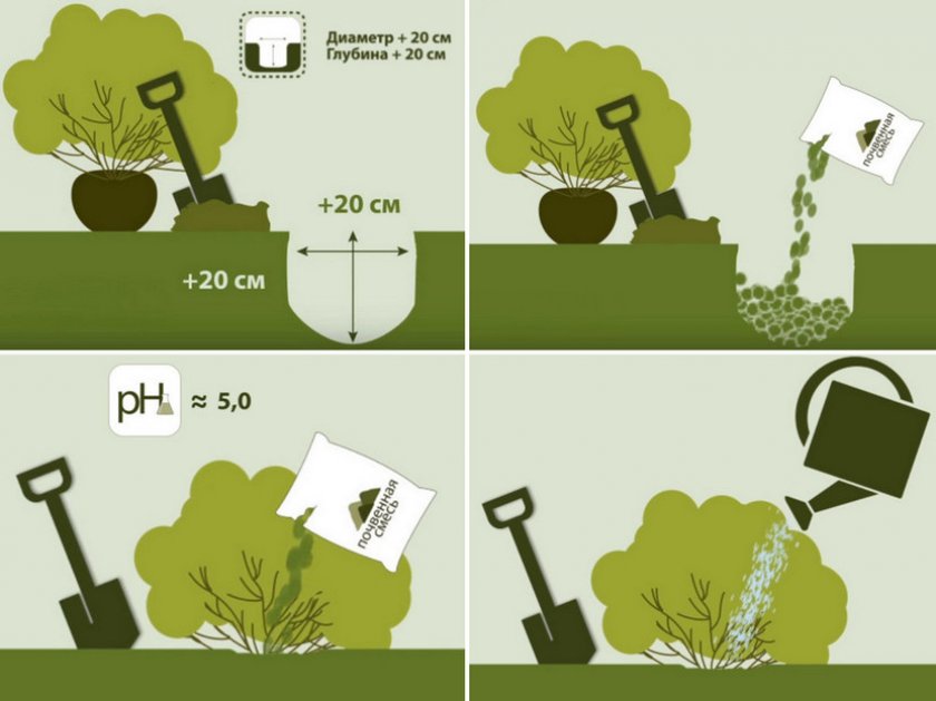 Также нужно подготовить специальную подкормку, которая добавляется при посадке кустарника.