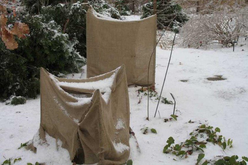 Если же на территориях, где произрастает кустарник, существует вероятность снижения температуры ниже -30°С, то побеги дополнительно укутывают мешковиной или плёнкой.