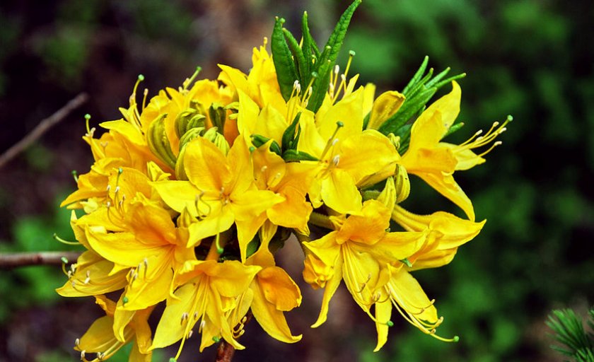 - Жёлтый или понтийский. Успешно выращивается в Главном ботаническом саду (Москва), но на зиму его нужно укрывать или пригибать к земле. Этот куст высотой 2–4 м может быстро разрастаться. Красивые соцветия имеют жёлтый или оранжевый окрас и приятный аромат.