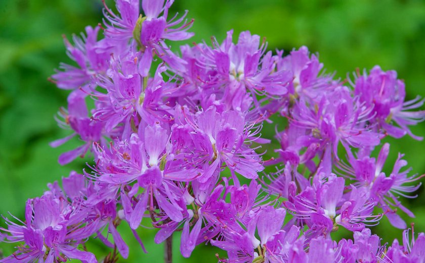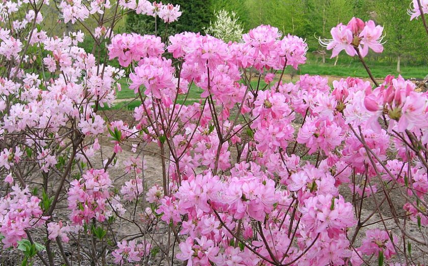 - Вазея. Куст из Северной Каролины, вырастающий до 5,5 м. Цветёт весной ароматными розовыми цветками диаметром 3–5 см. Вид очень красиво выглядит во время цветения и может выдерживать морозы до -26°С.
