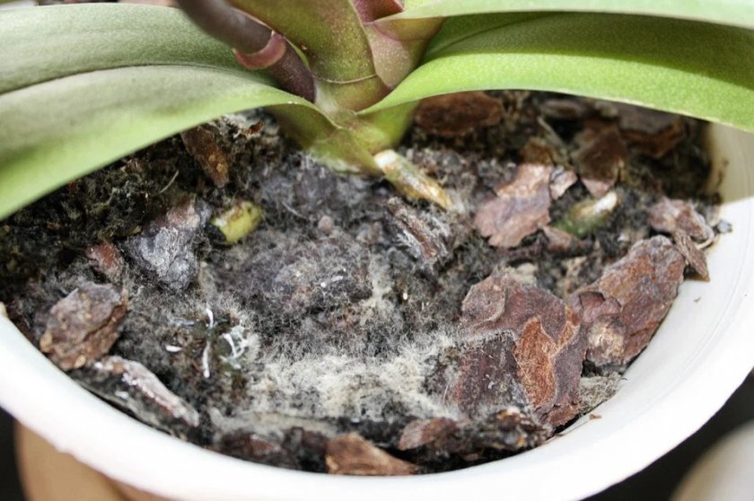 Самая распространенная причина, которая может вызвать загнивание корней – перелив. Многие стремятся очень обильно поливать орхидею, но при этом совершенно забывают, что необходима полноценная просушка грунтового кома в горшке. А после цветения полив можно бы было и сократить, но люди не поступают так. Это первая ошибка, которую совершает начинающий цветовод. Вторая причина кроется в том, что растение уже давно нуждается в пересадке после очередного, далеко не первого цветения. Старый грунт уже мог частично разложиться, превратиться в труху. Это замедляет или делает невозможным процесс проветривания горшочка. Еще одна причина – горшок стал мал из-за того, что корневая система очень сильно разрослась за годы и растению чисто физически не хватает места. Частички грунта уплотняются все больше и больше за счет того, что воздушные корешки распространяются в горшке.