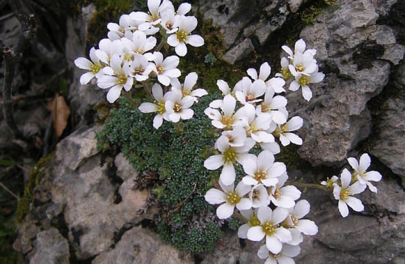 Родом из испанских Пиреней. В естественной среде растет высоко в горах. Имеет очень интересный внешний вид, благодаря расположению и форме своих листьев. Растение совсем маленькое: высота не более 4 см. Цветение происходит в мае и июне. Этот вид остается декоративным и после цветения: выглядит так, как будто камни (земля) покрыты красивым мхом.