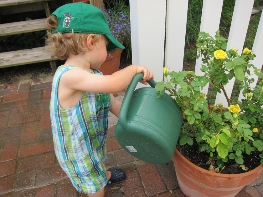Особенно нуждаются в более частом поливе розы, растущие в контейнерах или горшках. Почва, ограниченная ёмкостью, быстро пересыхает. Во время летней жары контейнерные или комнатные растения поливают каждый вечер.