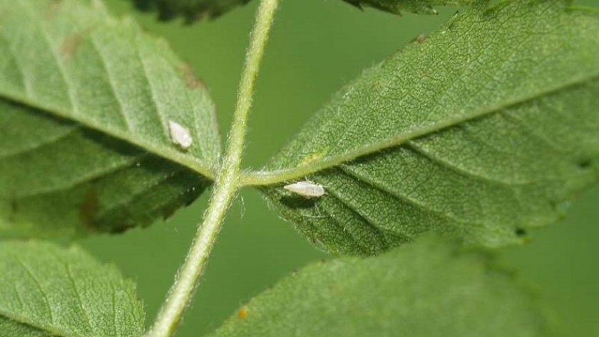 - Розанная цикадка. Это желтоватые насекомые с крыльями. Выявляются по светлым пятнам на листочках, которые затем опадают, рост и развитие цветка замедляется. При жаркой погоде быстро размножаются и могут спровоцировать появление вирусных болезней. Чтобы устранить данную проблему, листья, поражённые цикадой, удаляют и применяют инсектициды («Актара», «Фитоверм»).