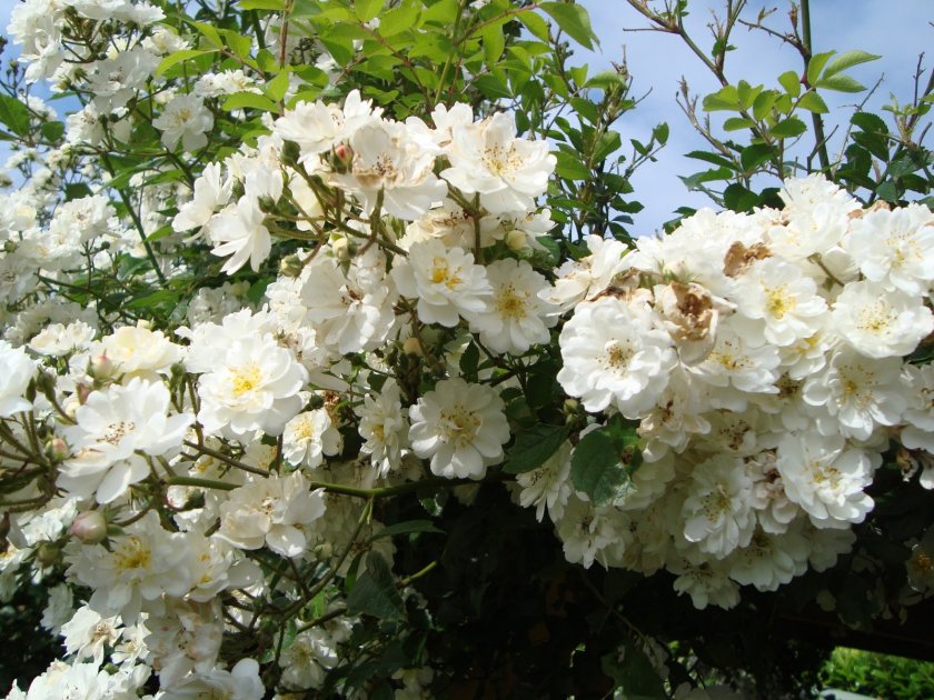 Из-за недостатка солнечного света у розы могут начать желтеть листья (как правило, именно нижние, т.к. они хуже освещаются), а также истончаться стебли и мельчать цветки. Поэтому розарий рекомендуется размещать на солнечных участках, при этом тщательно следить, чтобы не было загущения (вот почему розы, особенно плетистые, следует регулярно обрезать и прореживать — весной и/или осенью (на зиму).