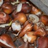 - Отсортируйте качественный посадочный материал. Все подгнившие луковицы безжалостно выбросьте, а из оставшихся выбирайте крупные и средние размеры. Если больших экземпляров не хватит, то используйте и мелкие, только располагайте их по периметру, так как цветы из них получатся тоже небольшие.