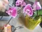- Цветонос срезают с орхидеи продезинфицированным инструментом.