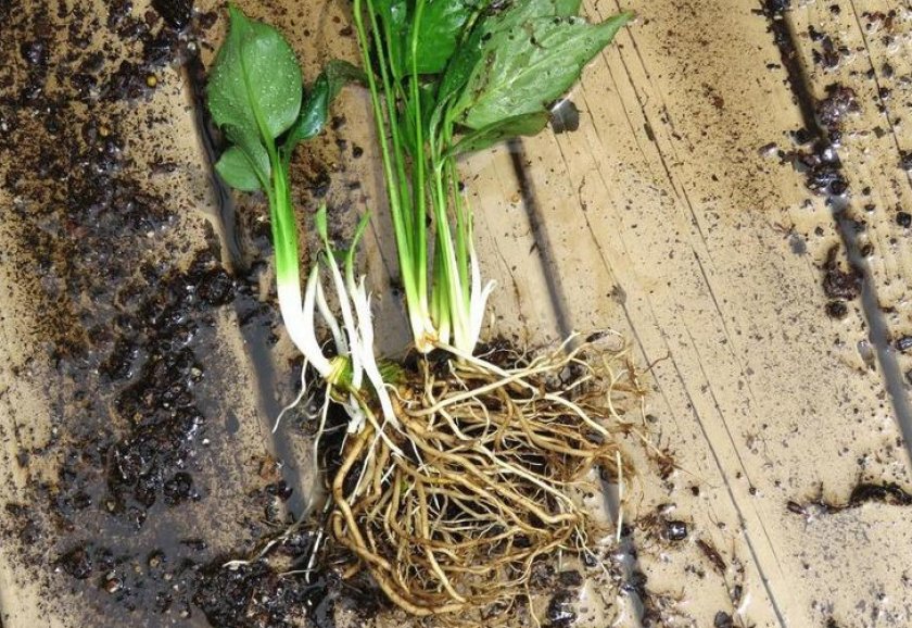 - После удаления спатифиллума из горшка промыть корни водой.