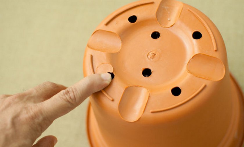 Хорошо, если ваш горшочек будет с отверстиями для слива лишней воды, а на его донышке будет уложен слой хорошего дренажа из пенопласта или керамзита.