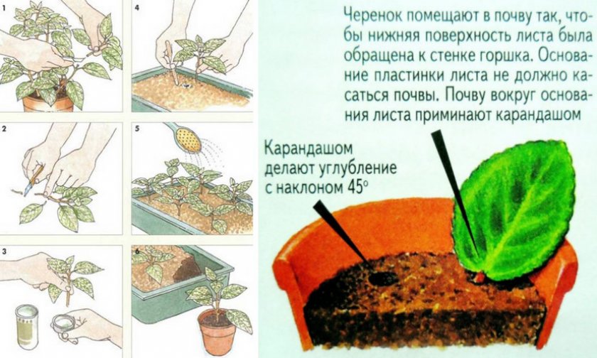 Этот способ применяют тогда, когда у растения слабая корневая система и отсутствуют семена, а хотелось бы размножить этот куст. Для черенкования выбирают здоровый лист. Если он крупный, то верхнюю часть обрезают.