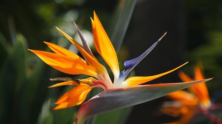 В ботаническом плане оранжевая часть цветка Стрелиции – чашелистики. Истинные лепестки фиолетово-синие. Они собраны в этакий клюв. Вот и получается птичья голова. На фото Стрелиция часто еще и окружена птицами.