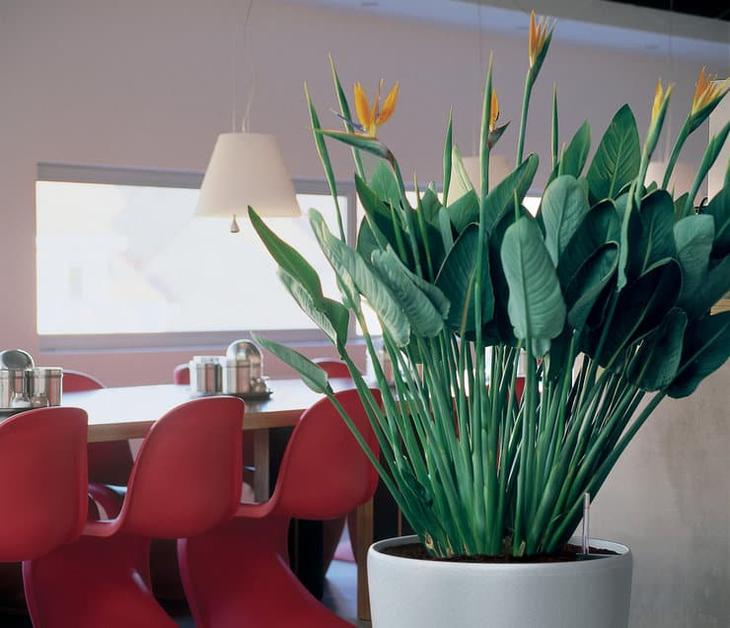 Наслаждайтесь красотой без списка излишних требований и претензий. Особенно кстати Стрелиция смотрится в интерьерах с этническими, африканскими мотивами. Можно, к примеру, поставить горшок с цветком на деревянный столик рядом со статуэткой-папуасом.
