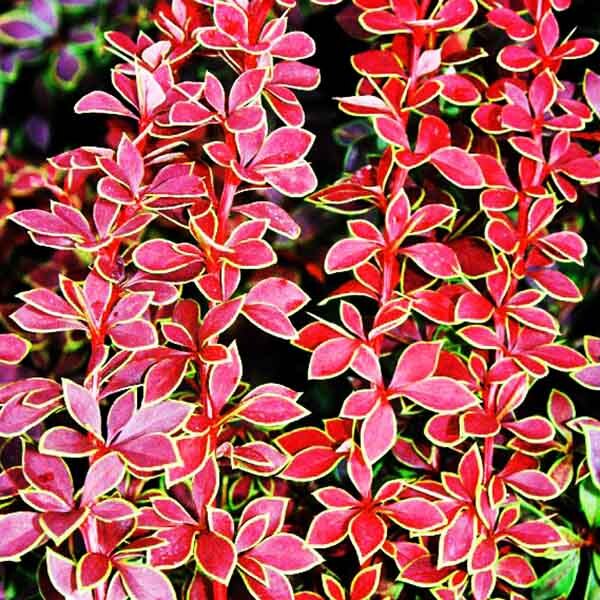 Большой популярностью пользуются новые сорта европейской селекции. Барбарис тунберга Coronita (Коронита) – приземистый куст идеальной формы, пурпурные листья окаймлены ярко-золотистой полосой. Вид у Корониты просто фантастический – это один из самых сложнопроизводимых сортов, так как его размножение довольно затруднено, в отличие от Ред и Оранж. Листочки его окрашены в приятный светло-розовый или коралловый оттенок, а по краям окаймлены очень ровной, словно прочерченной твердой рукой желтой линией. Барбарис тунберга Coronita (Коронита) – колючий небольшой кустарник, который отличается длинными побегами, формирующими ажурную крону. Высота этого сорта около 50 см, но в ширину он может вырастать до 1,5 м, так как ветви с возрастом постепенно начинают отклоняться в стороны. Барбарис тунберга Coronita (Коронита) имеет очень красивые колючки – крупные, насыщенного розового цвета с кремовым оттенком. Весной барбарис цветет: в мае распускаются изящные желтые цветы. А в октябре на аккуратном кустарнике появляются ярко-красные ягоды, прибавляя растению декоративности. Барбарис тунберга Coronita (Коронита) растет на солнце или в полутени, нежелательно сажать ее в тенистые участки. Он любит высокую влажность, плодородие, большое количество удобрений. Этот сорт барбариса нужно регулярно поливать, обращая особое внимание на обеспечение влагой в засушливые месяцы. При уходе желательна прополка и рыхление. Сравнительно зимостойкий сорт, молодое растение может немного подмерзать. Барбарис тунберга Coronita (Коронита) нужно использовать в садовых композициях только на переднем плане: такие замечательные листья ни в коем случае нельзя прятать. Идеален этот сорт в качестве солитера: от его декоративности не будут отвлекать другие растения.