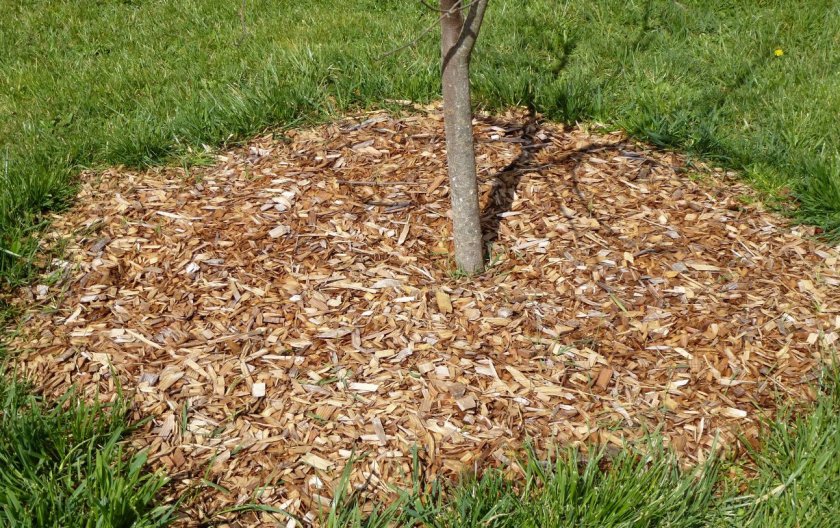 - Приствольный участок в пределах проекции кроны укрывают опилками или перегноем толщиной 10–15 см.