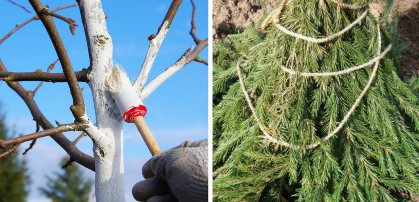 - Штамб и ветви очищают от нежизнеспособной коры, лишайников, мхов и покрывают известковым раствором (3 кг извести, 50–70 г казеинового клея, 400–450 г медного купороса на 10 л воды).