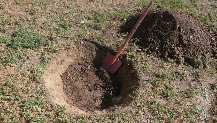 Лунка для посадки делается большой. В нее должно поместиться до 10 литров перепревшего навоза, 50 грамм калийной соли и 300 грамм суперфосфатов. Для предотвращения быстрого испарения влаги, землю вокруг саженца посыпают опилками и торфом.
