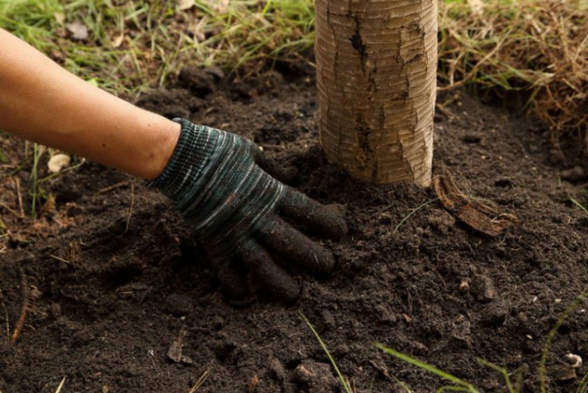 После каждого полива почву вокруг яблонь рыхлят, удаляют сорные травы.