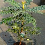 Верхние цветочные почки яйцевидной формы, покрыты пленчатого типа чешуями с сильным заострением. Для боковых почек характерна яйцевидная форма и наличие слабо заостренных чешуек. Сложные листья непарноперистые. Их длинасоставляет порядка 16-20 см. Черешки с красноватым оттенком.