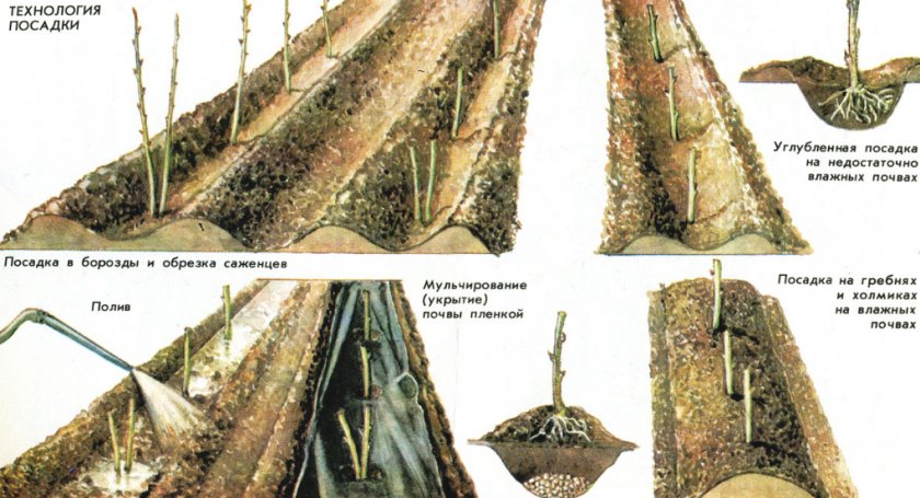 Есть два варианта выращивания: любительский и промышленный. Разница между ними в уплотненной посадке саженцев. В садах рассаживают растения на 1-1,5 метра друг от друга, междурядное расстояние не менее 2 метров. При промышленной посадке расстояние в ряду сокращают до 0,7-0,9 метров. Следует помнить: при интенсивном садоводстве количество внесённых удобрений увеличивается. При высадке почву вокруг растения сильно не уплотняют, а слегка придавливают руками. Очень хорошо поливают, не менее 10-15 литров воды на один саженец. Затем рекомендуют под кустами мульчировать землю сухими листьями или торфом.