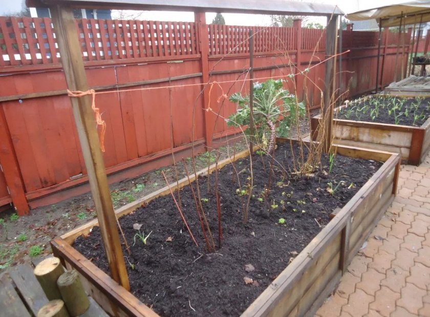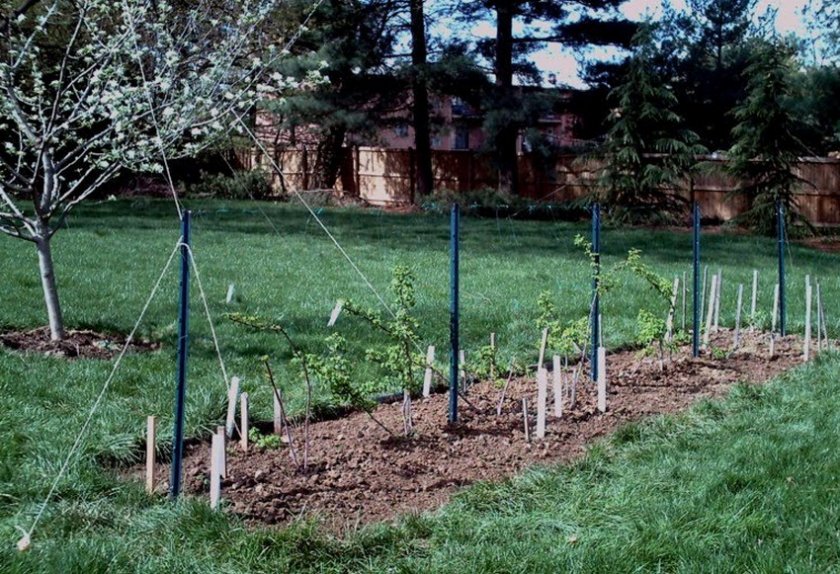 Для выполнения подвязки растений на шпалеру, потребуется заранее подготовить опоры высотой до 2,2 м, на которые будет натянуты 2 — 3 ряда проволоки (нижний уровень обустраивается на высоте до 60 см). Садоводы, знающие, как выращивать малину на даче, стараются подвязывать побеги горизонтально с соблюдением промежутка 10 — 15 см. Также допускается использование метода плетения, подразумевающего обвитие наклонно растущей ветви вокруг проволоки.