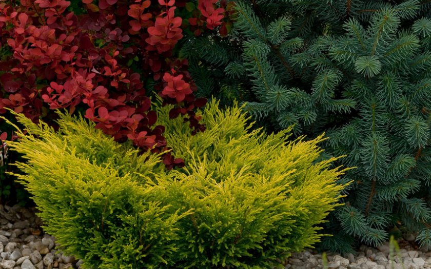 Если кустарник оказывается в тени, его облик может измениться. Красивый желтый оттенок хвои превращается в обычный – зеленый цвет.