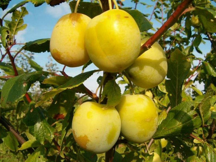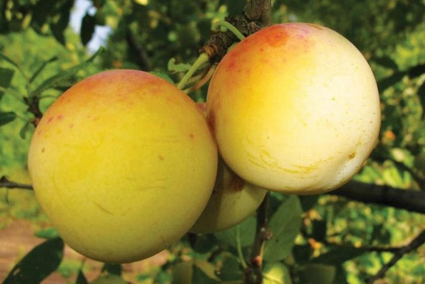 Название разновидности сливы говорит само за себя — оттенок кожицы и мякоти желтый, с небольшим румянцем. Плоды сочные, обладают отменным вкусом, без кислого послевкусия. Урожайность средняя — до 30 кг с взрослого растения.