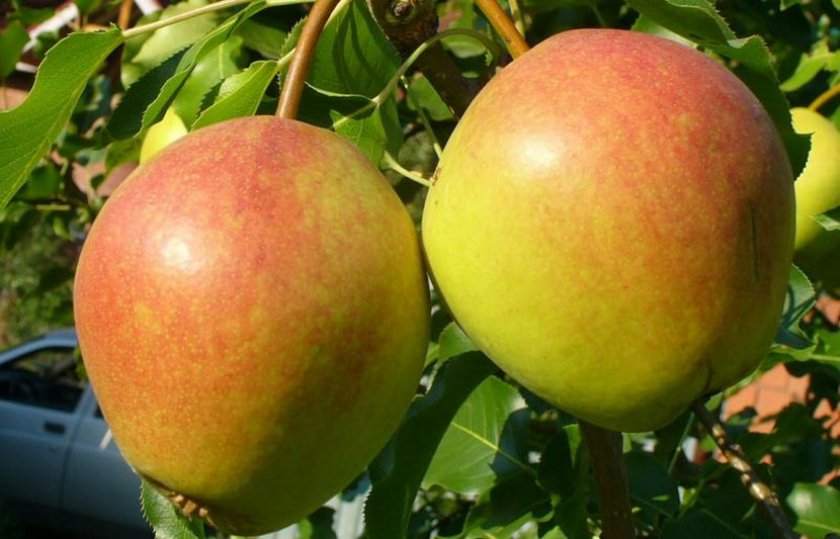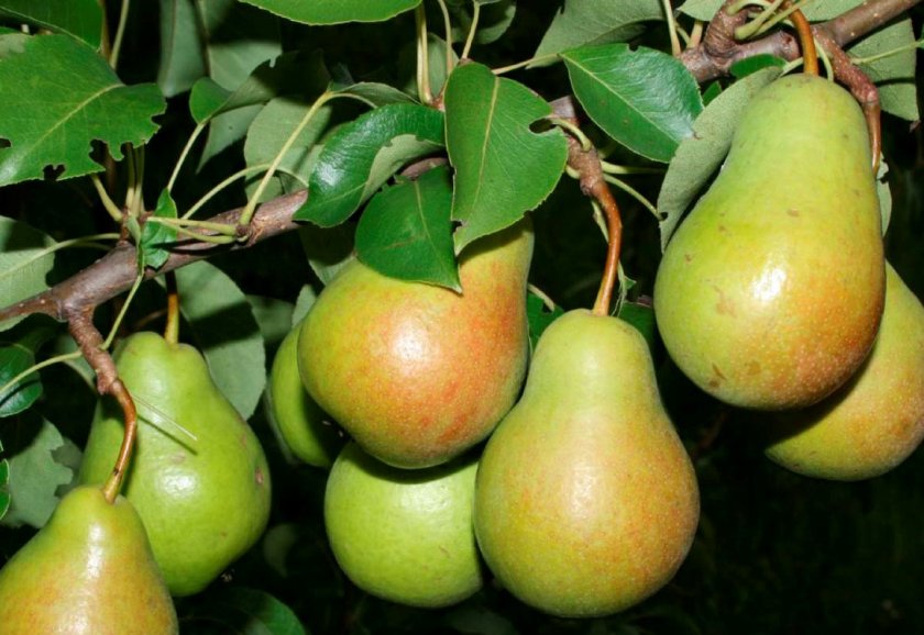 Эта садовая культура демонстрирует высокие урожаи. Груши окрашены в красно-зеленый цвет. Если не убрать плоды вовремя, они перезревают. Период полного созревания наступает в середине августа и продолжается до конца сентября.