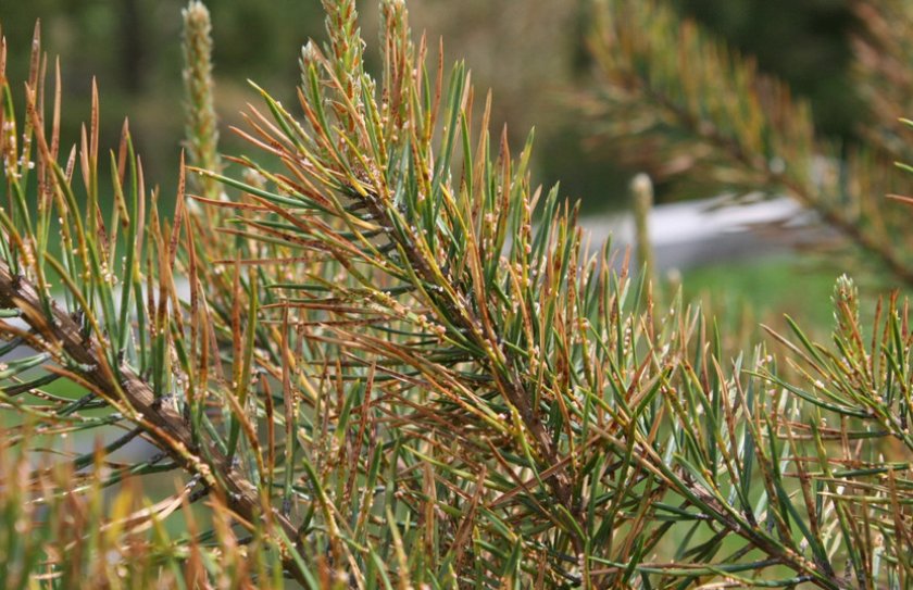 Поражение участков хвои особенно небезопасно для молодых сосен, так как у них нет взрослых побегов. Если хвоя у растения старше 2-3 лет, то у дерева есть шанс на поправку.