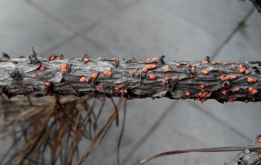 Биаторелловый рак опасен тем, что поражает древесину. При попадании инфекции меняется цвет молодой коры, она становится бурой, затем трескается, отмирает. Образуются длинные вытянутые язвы, они покрываются смолянистыми грибковыми наростами.