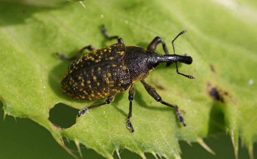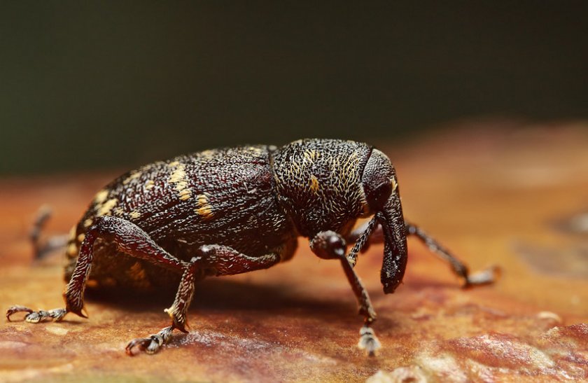 - Весной масса жуков устремляются на сосновый молодняк. Выгрызая участки коры на молодых побегах, они могут полностью погубить молодые деревца. Это ЖУК-ДОЛГОНОСИК или СОСНОВЫЙ СЛОНИК – достигает в длину 10-12 мм, бурый с неясным светлым рисунком из желтоватых чешуек, образующих две поперечные полосы на надкрыльях.