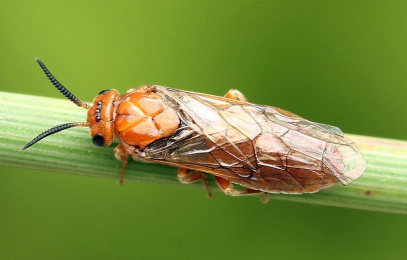 Ложногусеницы зеленого пилильщика в нашем саду не появлялись ни разу, они вредят можжевельнику. Это небольшие гусеницы с контрастными полосками, коричневой головкой. Они зимуют в углублениях коры, в узлах ветвей, под слоем хвои. Обрабатывать приходится все части растений, хорошо проливать почву. Лучше сгребать хвою полностью и засыпать вместо нее мульчу.
