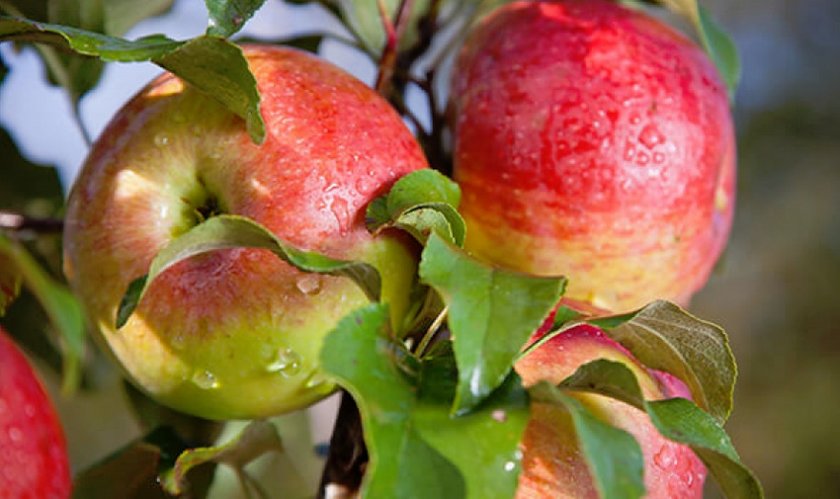 Листовые пластины — овальные, с короткими, но толстыми черешками. По большей части плоды образуются на кольчатках и плодовых прутиках, поэтому яблони придётся регулярно омолаживать. Первый урожай можно собирать уже на 3-й или 4-й год выращивания, организуя процесс уборки ближе к концу осени.