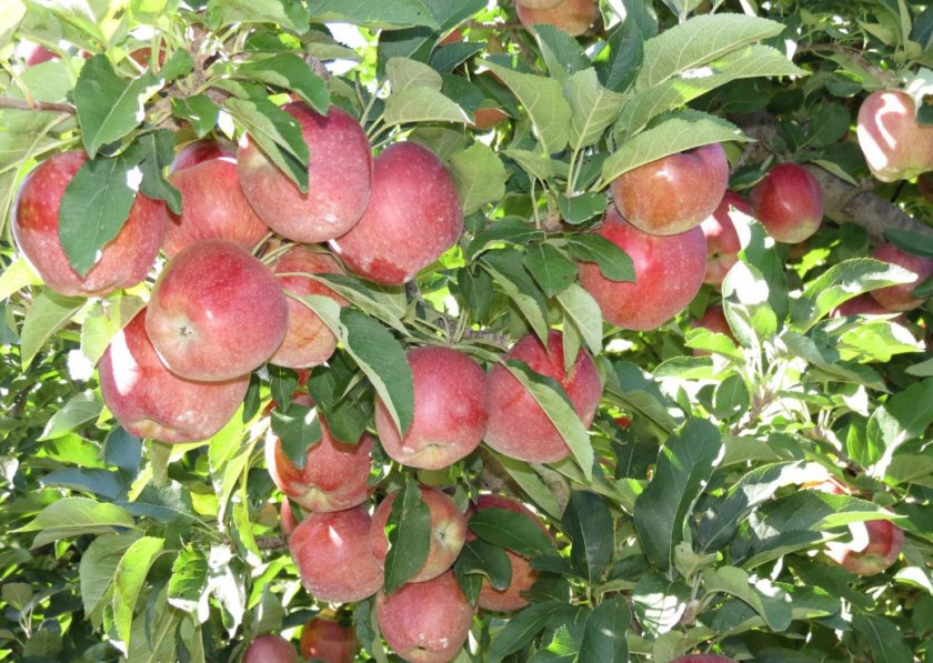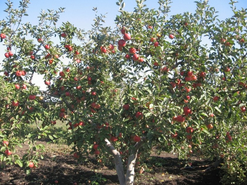 В среднем одно дерево приносит в год около 200-250 килограммов яблок, что вполне достаточно, как для маленького приусадебного участка, так и для коммерческого сада интенсивного типа.
