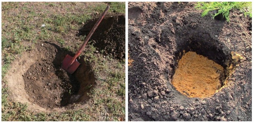 - Перед посадкой заготовьте заранее ямы, смешав верхний плодородный слой с удобрениями и залив все это водой. Постоять они должны под открытым небом не менее 3 недель, а еще лучше, с осени. В глубину достаточно 60-70 сантиметров, а в диаметре лучше делать 1 метр.