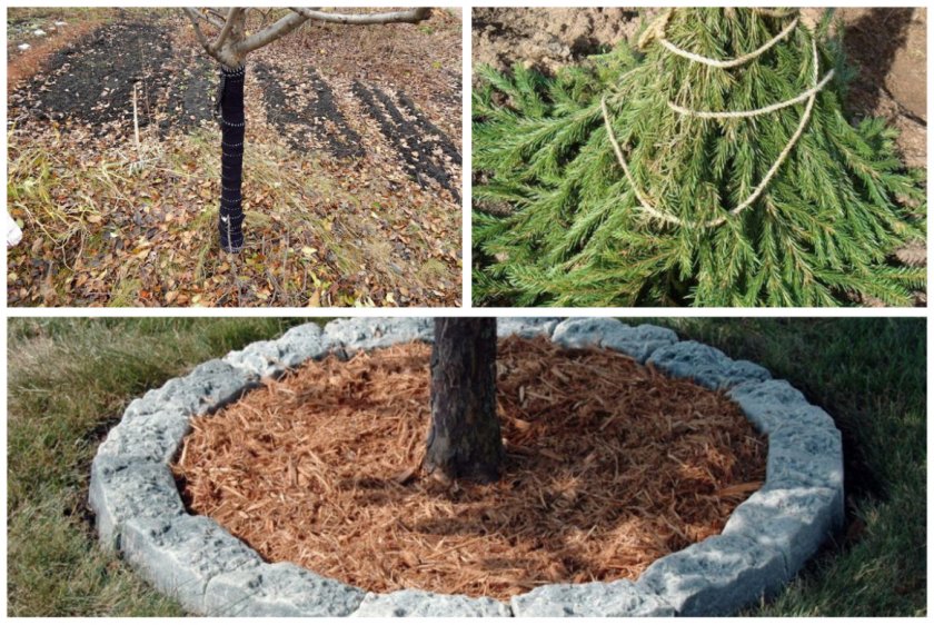 Если морозы в вашей местности падают ниже минус десяти градусов, более чем на неделю, то яблони нужно обязательно укрывать. На пристволовую зону у корней нагребают почву о 10-15 сантиметров высотой, стволы обматывают толем, рубероидом, обкладывают еловым лапником, соломой или сном. При потребности допустимо укрывать молодые деревца шатровым методом, так как для взрослых высокорослых экземпляров ничего подобного сделать уже не получится.
