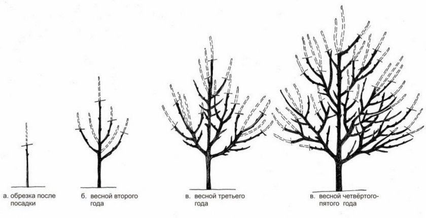Мероприятия по обрезке проводят рано весной, желательно в апреле, до момента распускания почек. Если на дереве имеются ветви, опущенные до самой земли, их нужно обязательно срезать, даже если на них имеются плоды.
