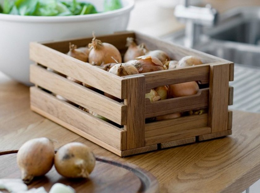 В такой таре прекрасно хранится не только лук, но и любые другие овощи. Ящики удобно переносить, а также их можно без вреда для овощей размещать в несколько рядов. Они подходят для использования и в доме, и в квартире, но требуют места для сбережения не в сезон, что может представлять некоторые сложности.