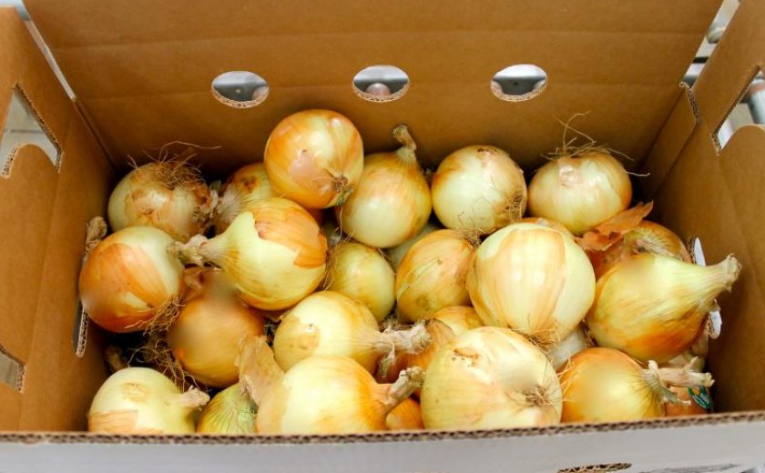 Хранение лука в картонных коробках выгодно тем, что это очень легкая и удобная тара. Чтобы обеспечить доступ воздуха к продукту, в ней достаточно сделать несколько отверстий, и она будет готова к использованию. После коробки можно выбросить, стоят они не дорого. Однако подойдут они только для хранения головок в сухих помещениях.