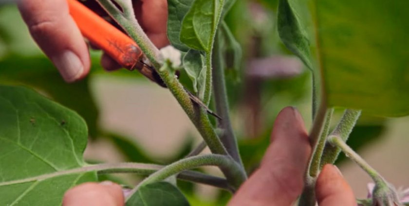 Эта стандартная процедура позволяет улучшить производительность куста баклажан, улучшить проветриваемость растений. Не пасынкуют слабые и плохо наросшие кусты.