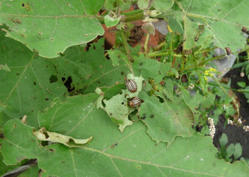 Чтобы болезни или вредители не помешали развитию кустов, следите за здоровьем своих баклажановых посадок. Для этого весной проведите дезинфекцию стен теплицы, инвентаря, с помощью которого будете ухаживать за баклажанами в теплице хлорной известью, медным купоросом или формалином. Во время роста растений посыпайте грядки горчичным порошком либо черным перцем, а сами растения опрыскивайте табачной или чесночной настойкой. Наиболее подходящие препараты для обработки кустов в теплице — «Фитоспорин» и «Циркон».