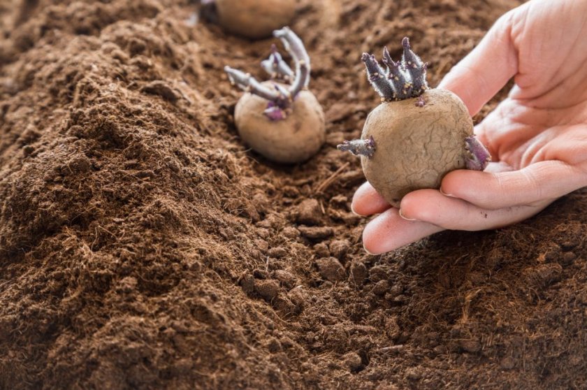 Семенной картофель начинают подготавливать за 20–30 суток до предполагаемой высадки. Первым делом его перебирают и отбирают для посадки здоровые не испорченные клубни, желательно среднего размера. Затем их раскладывают в ящики в 2–3 слоя и переносят в тёплое помещение, которое освещается солнцем. Периодически немного увлажняют из опрыскивателя. Высаживают в грунт хорошо проросшие экземпляры, клубни со слабыми ростками или не давшие их выбраковываются. Перед посадкой клубни можно пудрить золой или внести золу сразу в лунки.