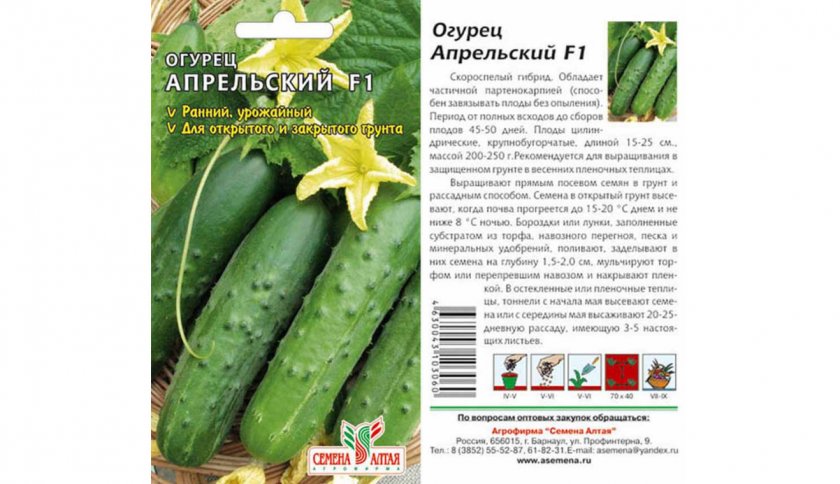 - Апрельский – устойчив к заморозкам, не боится распространенных заболеваний, характерных для огурцов. Овощи крупные – до 20 сантиметров, собирать их можно на 43 день после появления всходов.