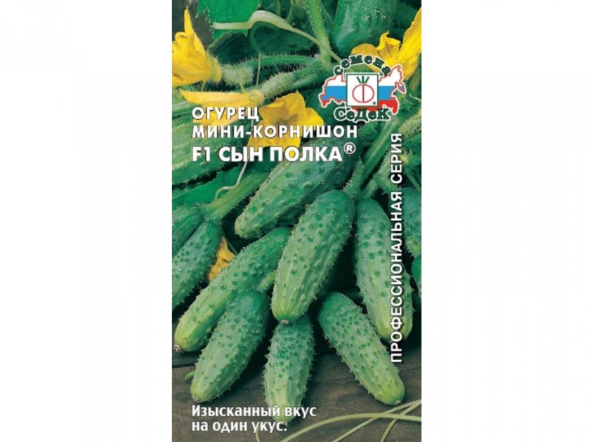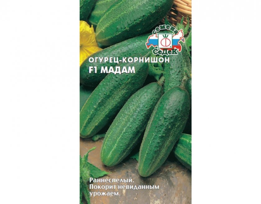 - Гостинец F1. Начинать сбор урожая можно примерно через 50 дней после появления всходов. Растения раскидистые, сильно ветвятся и требуют формирования. Зеленцы вырастают до 14 см, но их можно снимать корнишонами для маринования. Не требуют опыления насекомыми, имеют комплексную стойкость к самым распространенным болезням. Цена упаковки с 10 семенами составляет около 80 рублей.