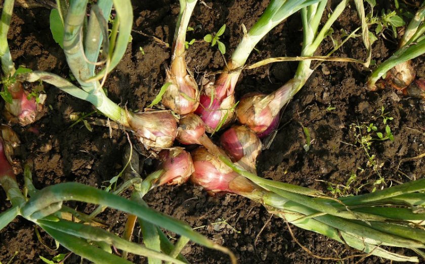 Семейный лук готов к уборке, если луковицы достигли диаметра 5–6 см, а их листья начали желтеть и засыхать. Срок сбора зависит от сорта лука и его вегетационного периода: он может составлять от 2,5 до 4 месяцев после посадки. Прекратите полив за 1–2 недели до уборки, чтобы дать луковицам окрепнуть и исключить излишки влаги, иначе срок хранения этих овощей существенно сократится. Подождите, пока чешуя луковиц не станет плотной, после чего их можно выкопать, дать им просохнуть в сухом, тёплом, хорошо проветриваемом месте.