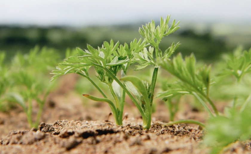Всходы моркови не боятся лёгких заморозков, но при укрытии плёнкой или агроволокном будут расти быстрее.