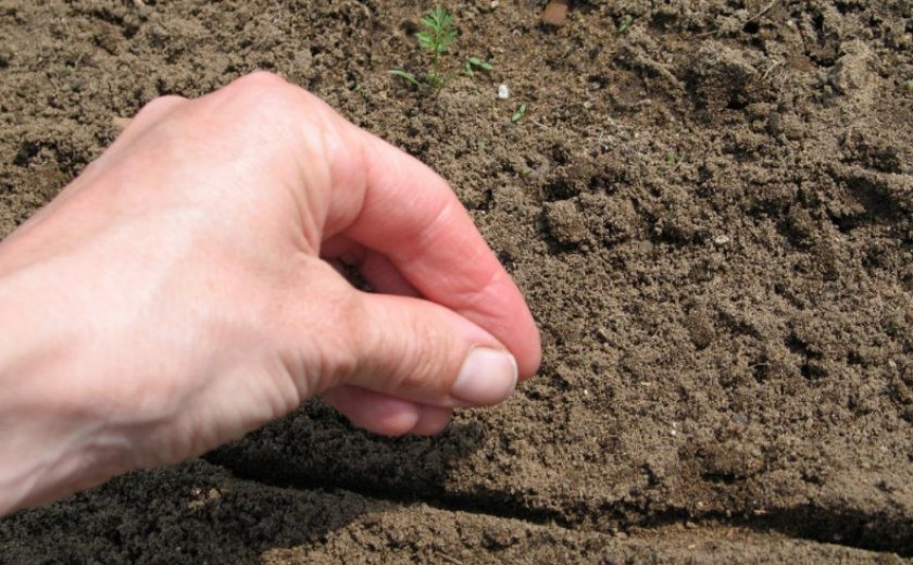 - В канавку поместить семена и накрыть их землей, слегка уплотнив рукой.