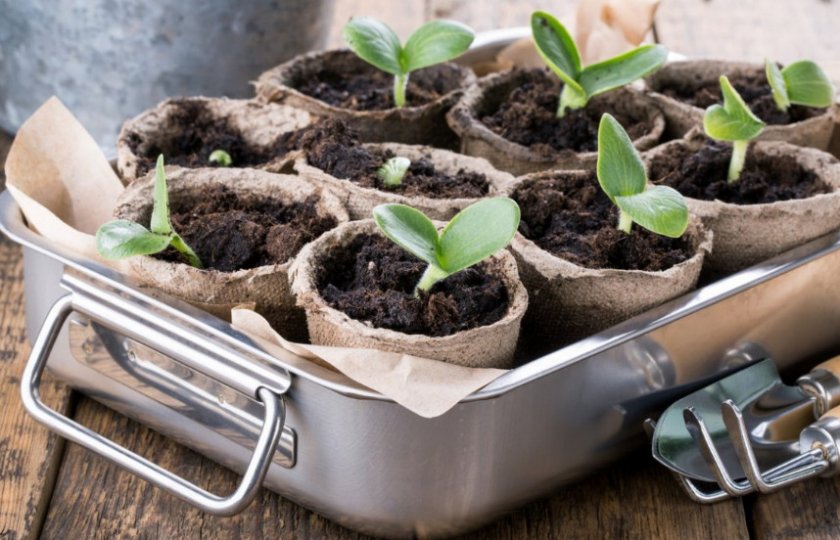 - Подготовьте посадочные емкости. Лучший вариант – торфяные стаканы, так как тыква не любит пересадок, а эту «тару» можно заглублять в грунт вместе с корнями рассады.